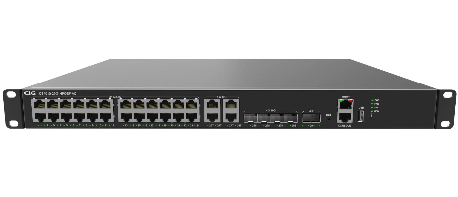 CS4010-29Q-AC 24* 2.5G GE+4*10G Combo + 1*40G QSFP 150W AC Power Marvell 98D X 3258 Solution ISS